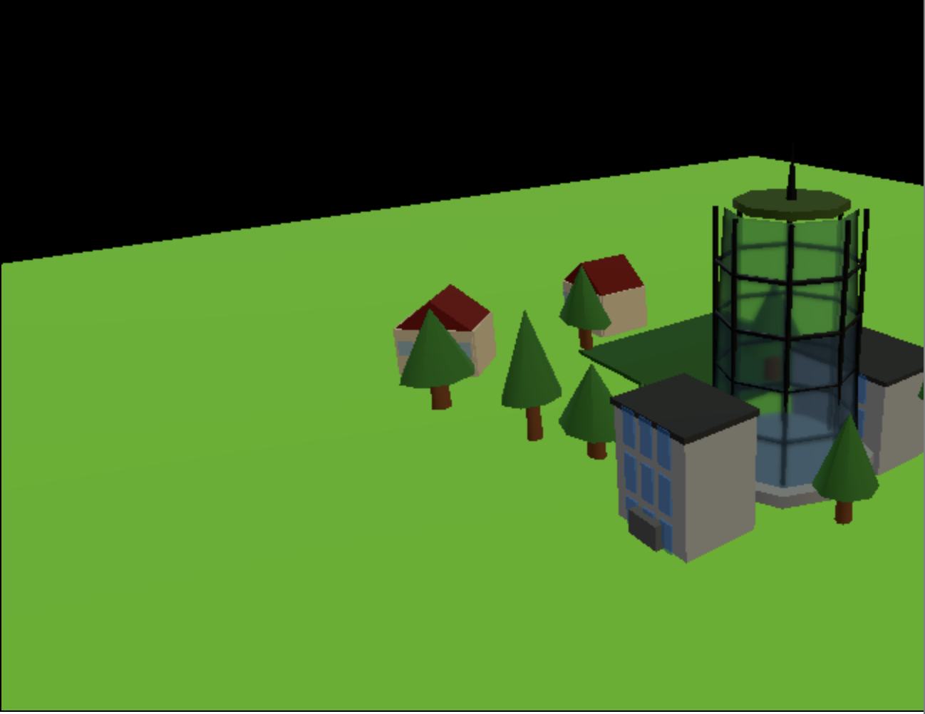 Student: Anonymous (GraphicsTown Buildings: I built two houses with windows and doors, and different roof types. There is also a tree with bark and leaf textures. Additionally, I drew a castle with a cylindrical body and cylindrical towers. I used brick and cobblestone textures to achieve the desired look.)