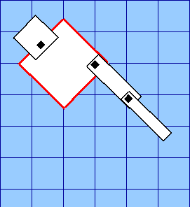 Notice that in this picture, the biggest square is the "root", and the pins are noted by black dots.